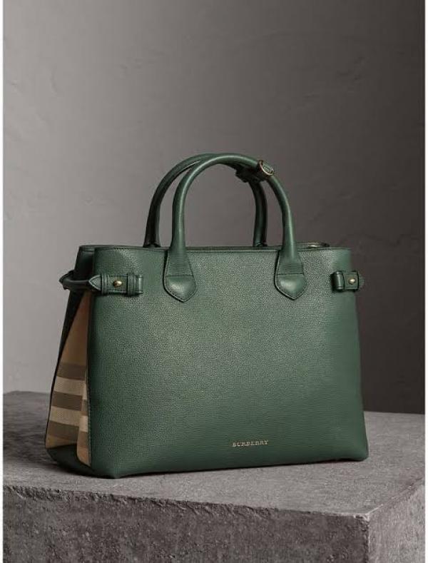 BURBERR.Y GREEN MEDIUM BANNER HAND BAG PREMIUM LEATHER WITH DUST BAG